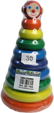 Riziko: Zadusenie sa, malými časťami- hlava šaša, chemické riziko- zelená farba na hračke obsahuje olovo v nadmernom množstve